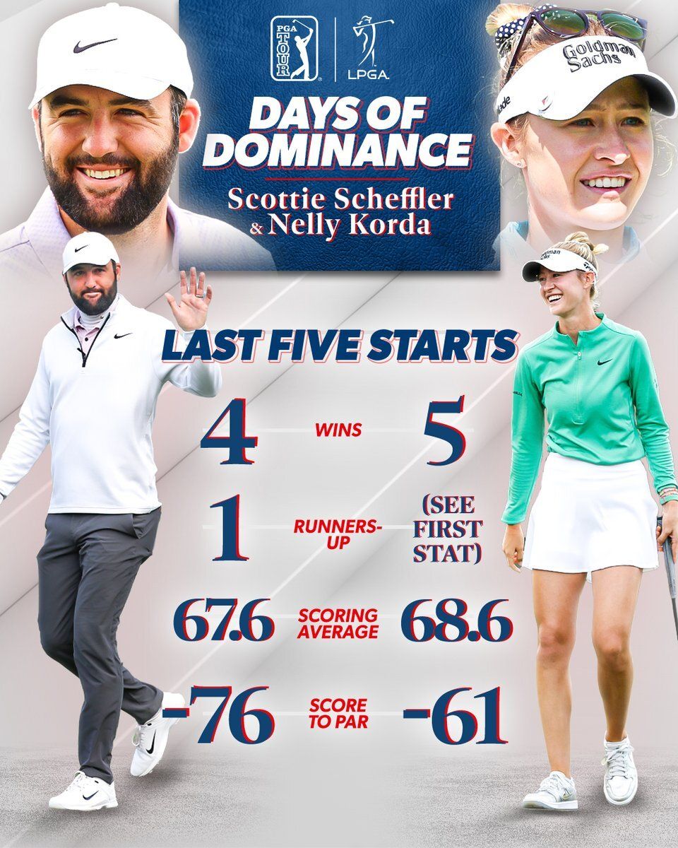 In the combined last 10 starts they’ve beat out 1,163 golfers. Nelly has 1 up on Scottie with 5 consecutive wins in her last 5 starts.